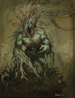 Here's a tree creature, one that might just be releated to the sentient trees in the story, though this fella, created by Oliver Chipping, seems more a hybrid of man and tree and...hmmm, that's one of my fave myths and ideas to work with, too. Man, nature, melded...hmmm...